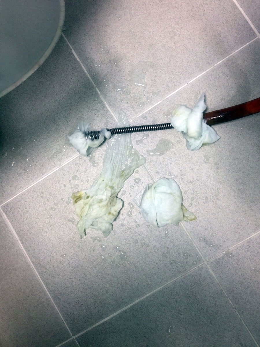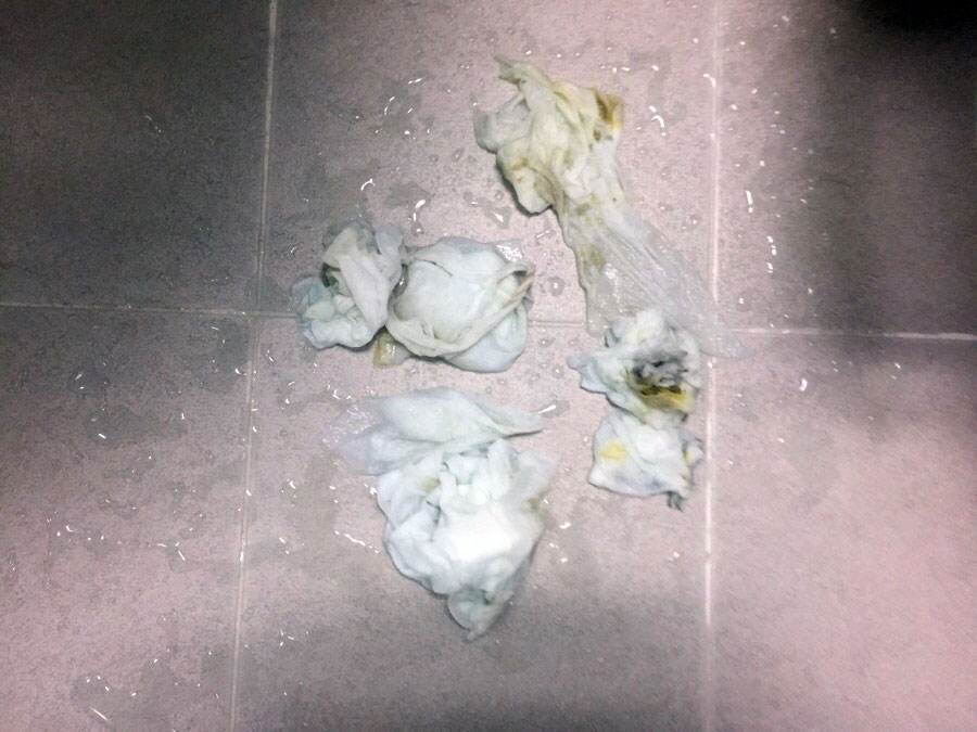 첫 번째 관통기에 걸려 나온 물휴지 이렇게 걸려