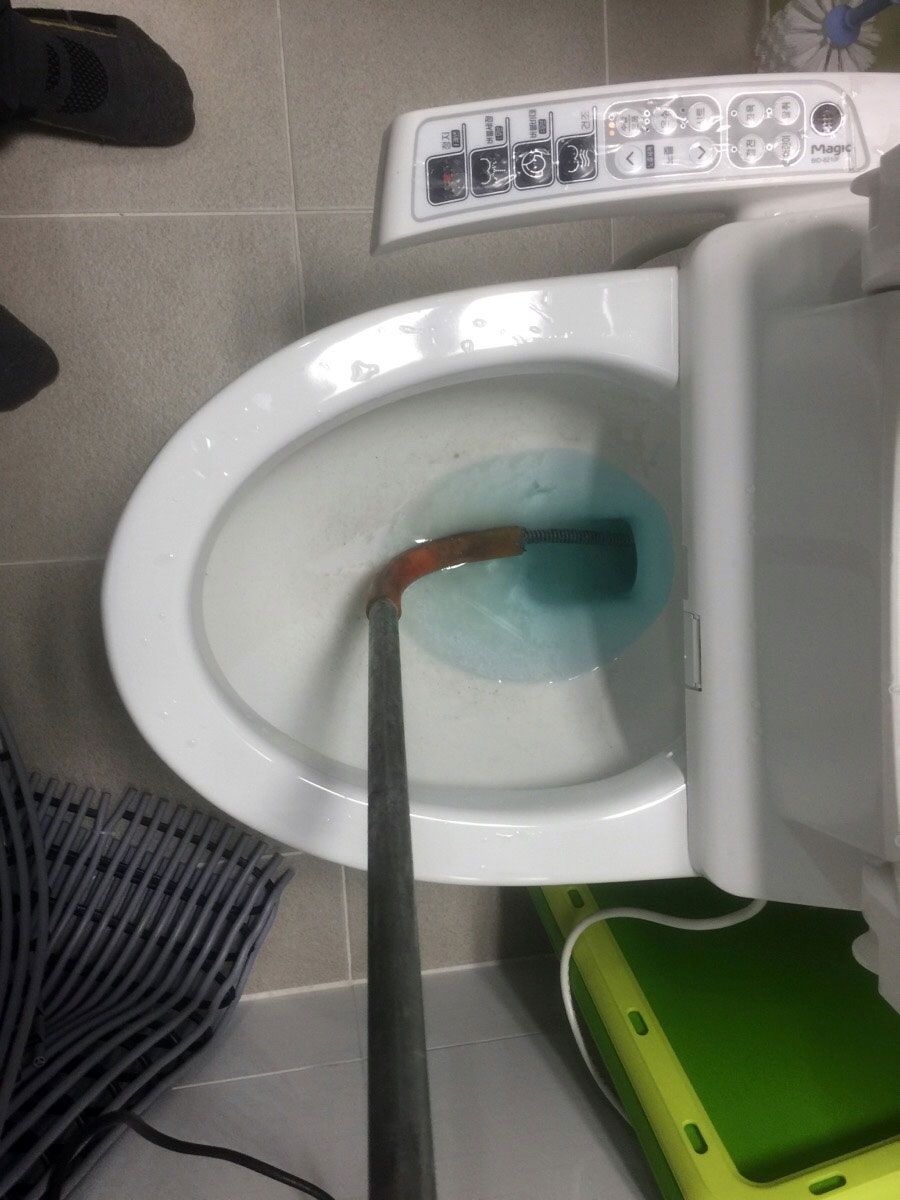 두 번째 관통기를 변기에 집어넣어 해결합니다