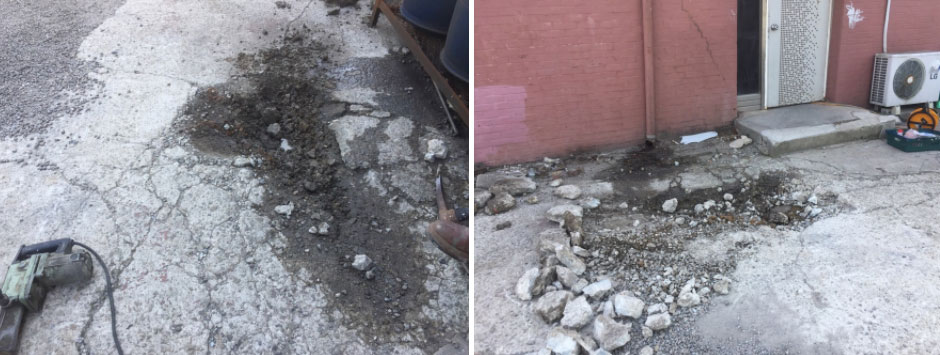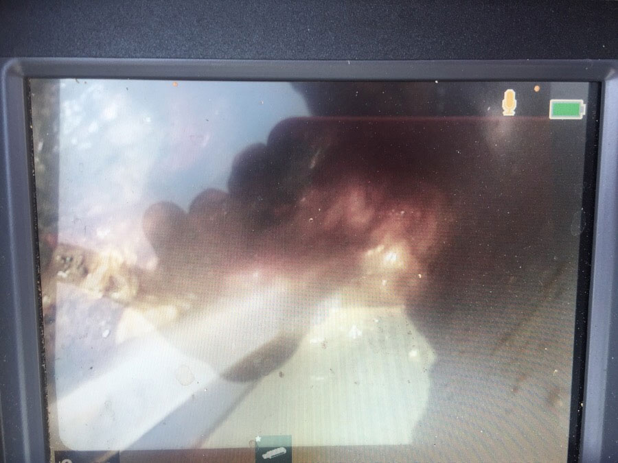 무너진 배관 상태입니다 반사돼 선명하게 아쉽네요 정확한 위치를 관로 탐지로 지점을