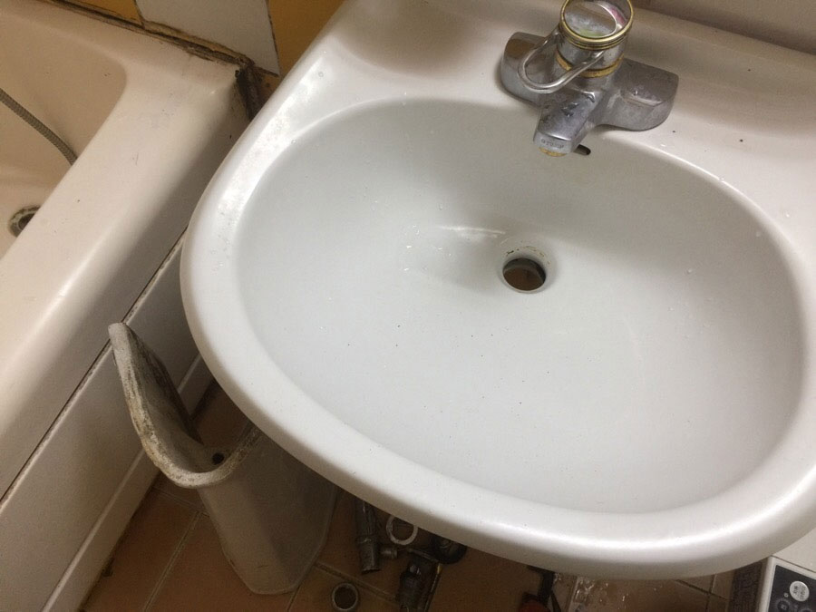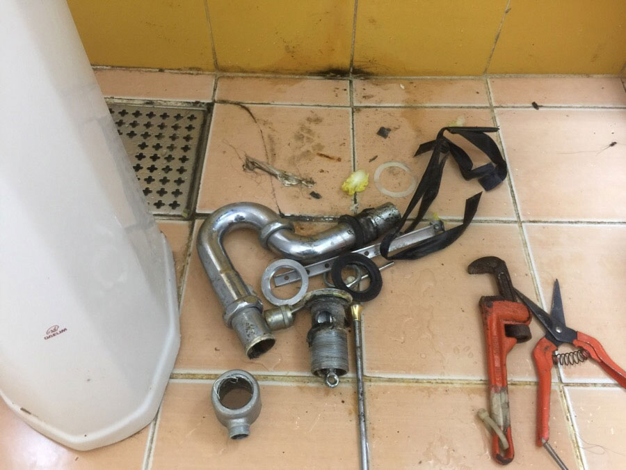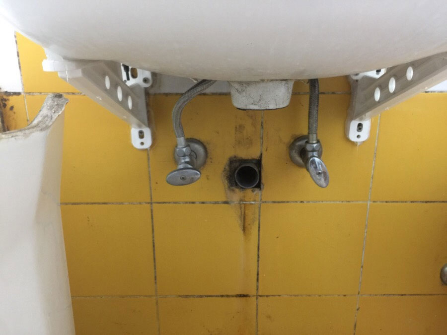 오래되서 떼가 끼고 낡은 세면대 하부가